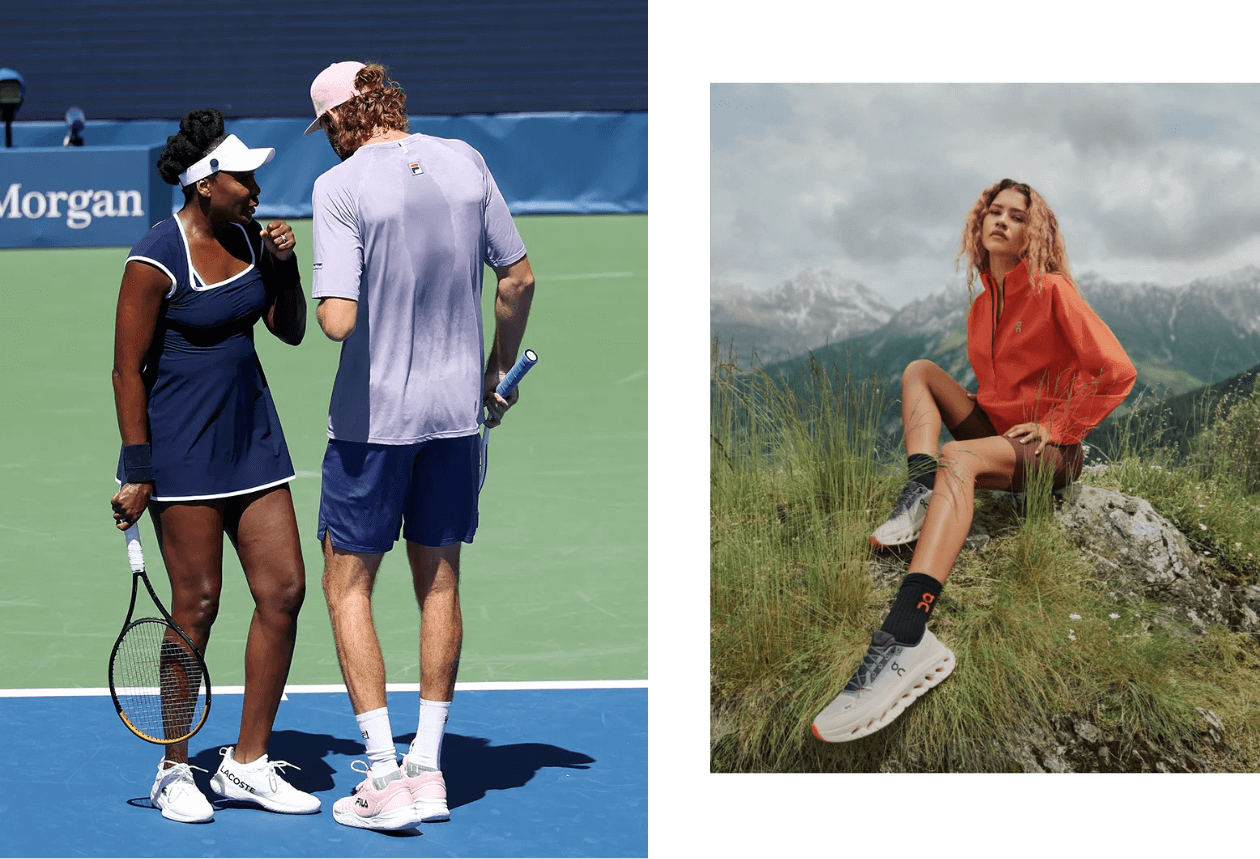 This craving for expression and diversity in sports and wellness is the perfect opening for fashion and sports to come together, but so far, they have given us very little outside of luxury activewear, elite athlete sponsorships, and a $3,000 Alo handbag. On showed lots of potential to own the intersection when it collaborated with Jonathan Anderson’s Loewe (who by the way, is the only real On rep) and brought on FKA Twigs and Zendaya as non-athlete ambassadors at the height of the Challengers craze. Vuori quietly took over your high school classmates’ wardrobes by partnering with Dylan Efron, Tom Holland, and the Gerber family among an extensive roster of footballers, tennis players, and runners. On the opposite side of the field, Dior shot Real Madrid’s Kylian Mbappé for the Summer 26’ campaign, Khaite made a custom kit for Venus Williams, and Bottega Veneta invited boxer Imane Khelif to sit front row at their Spring 25’ show after she won gold at the Paris Olympic where she found herself in the middle of a gross international scandal. And yet, none of these perfectly strategic efforts materialized in lasting stories that brought sports and fashion together in a meaningful way.